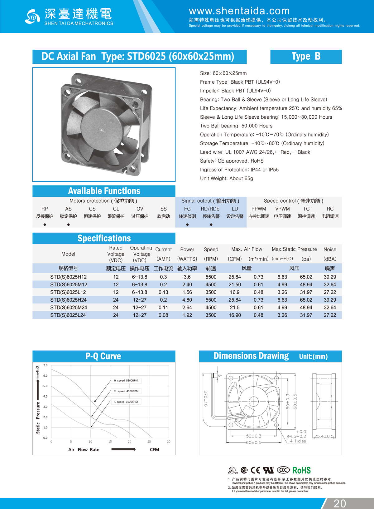 70x70x25mm - H